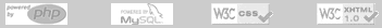Icones de courtoisies Si votr ethème personnalisé est valide, le conteneur {VANITY} sera remplacé par la mini banière avec les liens vers PHP.net, mysql.com et les validateurs HTML et CSS validators de W3C. |